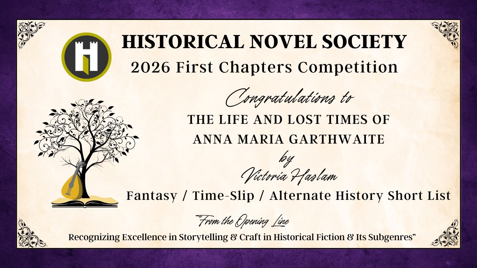The club is delighted to announce a double success in the recent short lists published by the Historical Novel Society for their First Chapters Competition 2026. Victoria Haslam made it onto the Fantasy / Time-Slip / Alternate History short list for her novel ‘THE LIFE AND LOST TIMES OF ANNA MARIA GARTHWAITE’, while David N. Martin made the 20th Century Short List for ‘THE MODERN TYPE’.